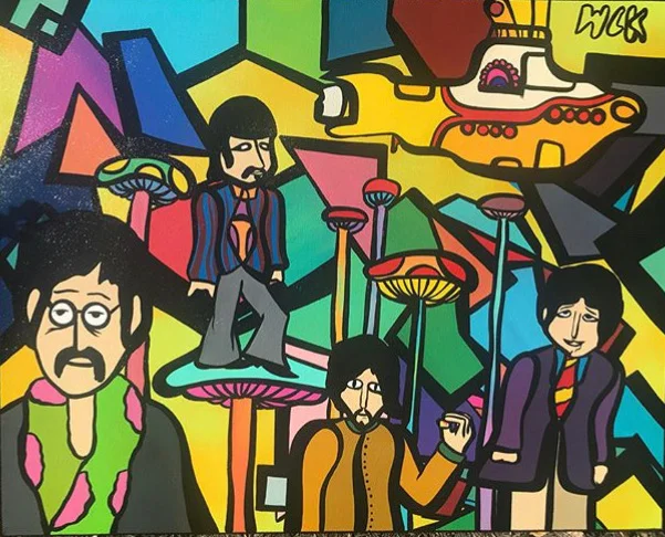 This four-piece set to the right was painted by westcoast_kassy in 2017. The two four ft. wooden vertical pieces contrast one another enhancing the overall energy of the art. All the pieces are unified with the same clean finish gloss leaving the paintings always shining like new.